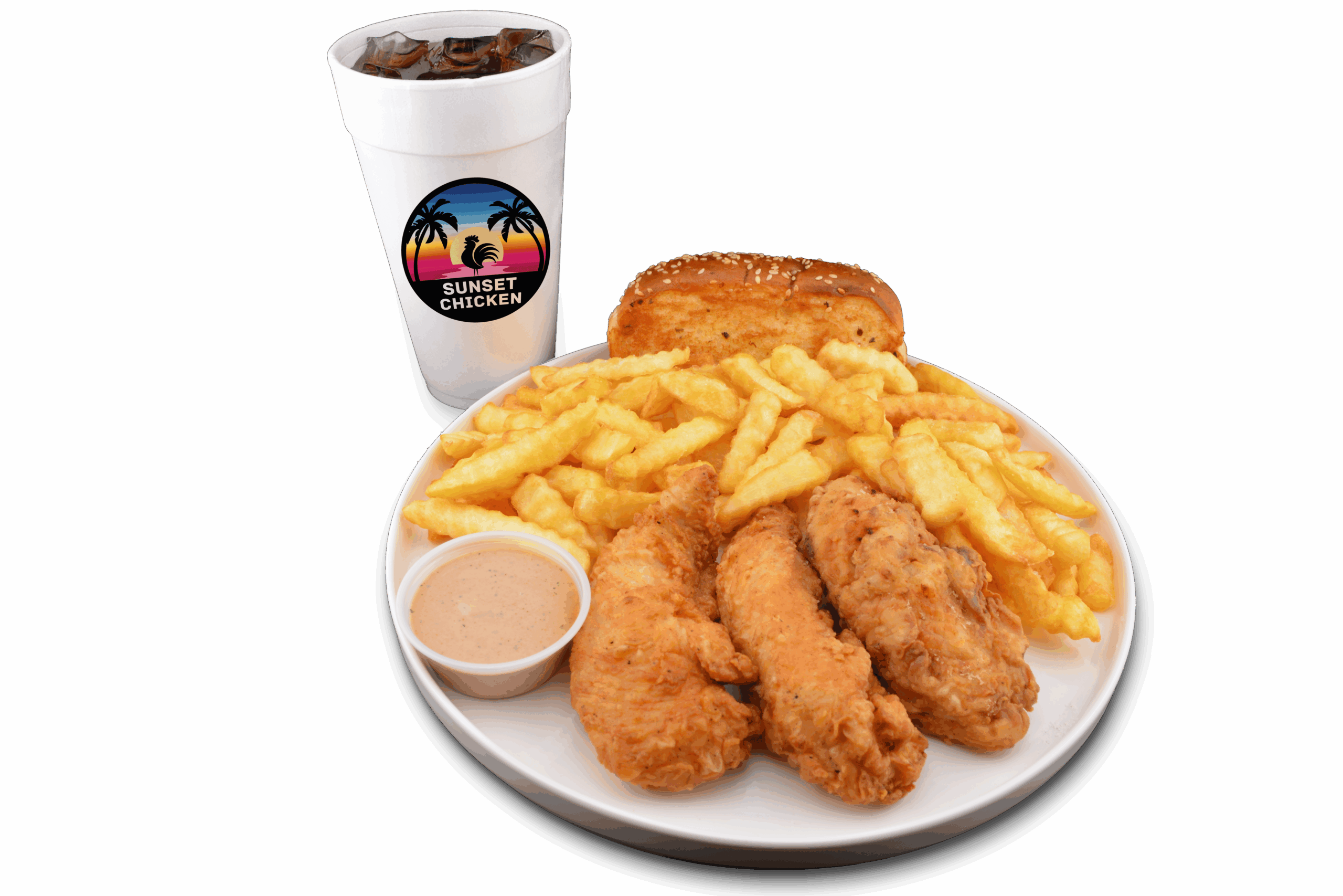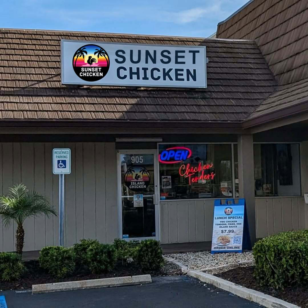 Our story began on Marco Island, Florida, as Sunset Chicken — a cozy, take-out only concept with limited seating, focused on fast, fresh, flavorful food. Guests quickly fell in love with our crispy, hand-breaded tenders, seasoned fries, buttery toast, and our original Sunset Signature Sauce.